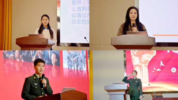 尚知雨和张璐媛都是退伍大学生,他们以自己入伍参军的经验来阐释宣讲主题。尚知雨向同学们介绍了他大学入伍后的艰辛历程和在此过程中四次流下眼泪的故事。他用自己的经历告诉同学们,要坚持去做自己想做的事、要做的事、应该做的事,要不甘平庸,向上而生。张璐媛讲述了她的军旅之梦,她说勇敢的人先享受世界,希望同学们在大学四年里不负美好的青春年华,做一个有计划、有目标、有理想的人,规划好自己未来的人生路线,充实度过这四年的青春时光。(撰稿:李仁静 摄影:汤欣睿 胡欣怡 初核:龙源 编辑:朱新水 审定:尹广富)