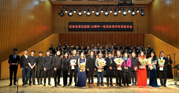 当晚,毛泽东诗词专场音乐会在音乐厅隆重上演,相关职能部门负责人、音乐学院师生出席音乐会。