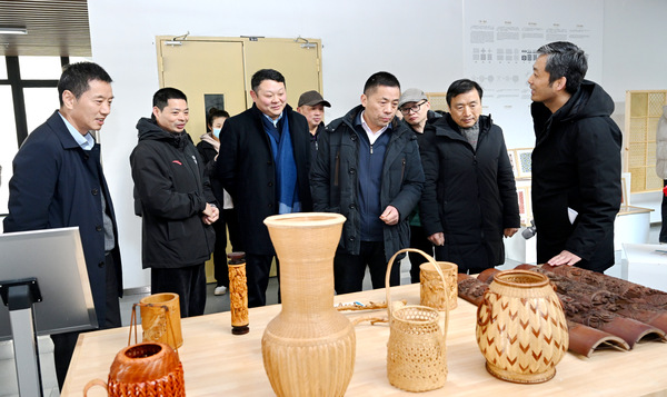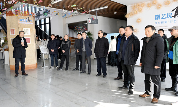 12月25日上午,徽艺民(再)生系列主题“竹构精彩”竹艺作品展在设计学院开幕。党委副书记、校长樊嘉禄,党委委员、副校长陈林,金寨县茶美中心党组书记、主任张勇,金寨县流波䃥镇镇长朱永章,国家级竹编舒席传承人苏成军,新葡的京集团3512vip研究员、国家级工艺美术大师洪建华及设计学院师生观看展览。