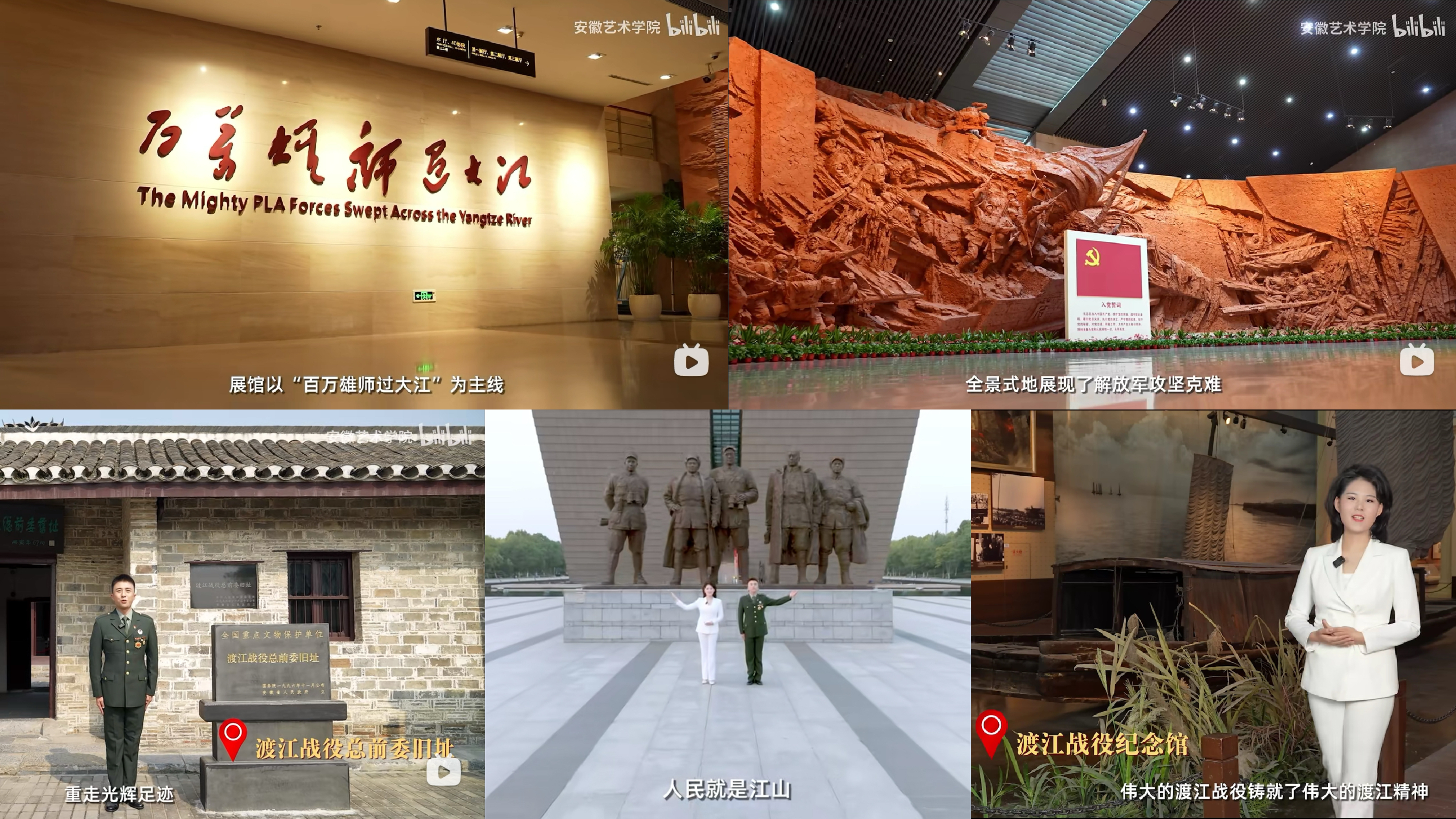 学校党委高度重视此项活动,党委宣传部和新葡的京集团3512vip细致谋划、认真落实,马院思政课教师和相关专业教师合作指导大学生组建团队,围绕思政课有关章节或专题进行教学设计。团队核心成员为2021级、2022级新闻学专业、播音与主持艺术专业学生。团队成员在教师指导下精心设计、通力协作、反复打磨,将传统课堂和“场馆里的思政课”结合起来,追寻习近平总书记考察安徽的足迹,前往合肥渡江战役纪念馆讲授渡江战役历史,阐释渡江精神,号召新时代青年缅怀先辈伟绩,传承红色基因。在参赛作品上传B站宣传推广环节,党委宣传部、党委学生工作部、团委等部门和各二级学院给予了大力支持。