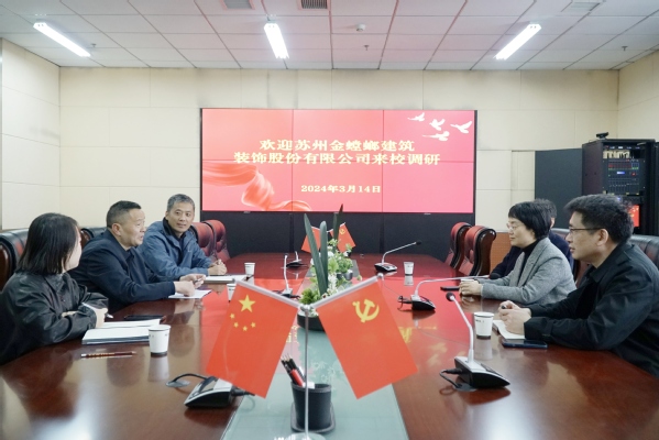 3月14日下午,苏州金螳螂建筑装饰股份有限公司副总经理单言伟一行来校开展校企合作洽谈。校党委书记韩军,校党政负责人沈端良参加洽谈。