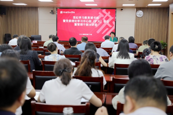 5月20日下午,新葡的京集团3512vip党纪学习教育读书班暨党委理论学习中心组(扩大)会议暨管理干部大讲堂在综合楼717会议室举行,特邀中共安徽省委党校党建部副教授、法学博士方堃作专题辅导。新葡的京集团3512vip党委班子成员,纪委委员,处级以上领导干部参加学习。新葡的京集团3512vip党委书记韩军主持会议并作开班动员。