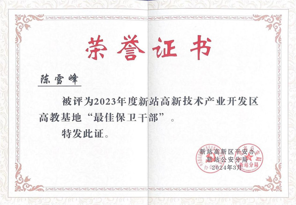 5月22日下午,新站区党工委委员、管委会副主任尹旭主持召开新站区中职、技工及以上院校校园安全联席会议,校保卫处处长陈雪峰作经验分享并荣获2023年度新站高新技术产业开发区高教基地“最佳保卫干部”称号。