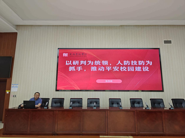 陈雪峰以《以研判为统领,人防技防为抓手,推动平安校园建设》为题进行经验交流发言,我校校园安全工作举措得到参会人员的一致认可。