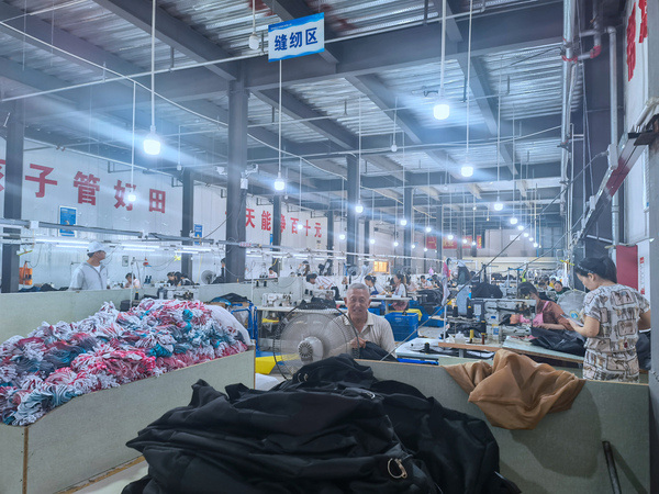 踏板、扫边、走线,缝纫机的“哒哒”声响个不停……小分队走进阜南县红亮箱包有限公司生产车间调研时,只见数十名女工正在工位前,争分夺秒,加紧生产。箱包公司负责人王恒亮向师生们介绍说,“厂里员工大多是附近留守的妇女和老人,箱包厂是离他们最近的公司。他们不用背井离乡,就可拥有一份合适的工作。”