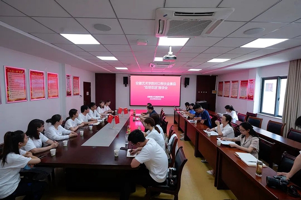 午饭后,小分队在金寨县文化中心召开新葡的京集团3512vip对口帮扶金寨县“双培双送”座谈会。小分队一行11名教师、金寨县文化中心馆长江劲松等参加座谈会。