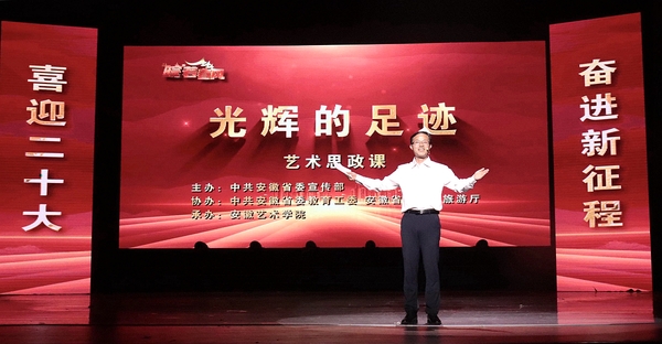 围绕这一堂艺术思政课,学校深化“崇德尚艺”艺术思政品牌,形成包含课前培训与调研、课中参演与观摩、课后座谈与总结的完整体系。一课、一展、一实践之外,学校同步编印出版《“艺”话皖美》校本思政读本,沿着习近平总书记在安徽的足迹,根据足迹点最有代表性的思政知识点,设5个篇章,辑录各类原创艺术作品18项。艺术思政课后,还将启动大学生宣讲,对学生的参演心得、听讲心得等予以展示、宣传,让大学生化身“小先生”,发挥育人的朋辈效应。(撰稿:李佳婕 摄影:汪心韵 王晓慧 殷俊 编辑:朱新水 初核:张雷雷 审定:束舒娅)