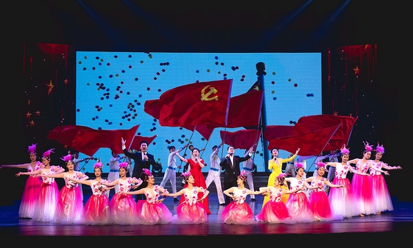 当剧场的灯光缓缓暗下,庄重高亢的前奏响起,一抹“红”夺入眼帘。“光辉的足迹”艺术思政课在导课《我心中的红》的进行中开场。