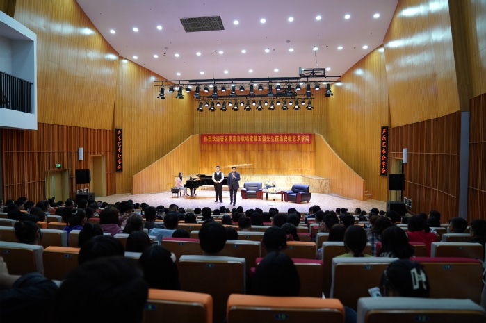 聘任仪式后,戴玉强为我校师生上了一堂生动的大师课。对三位登台学生,戴玉强逐一从发声方法、吐字技巧、情绪调节等方面悉心加以指导、点评和示范,把丰富的经验和娴熟的技术传授给在场的师生。同时,他鼓励学生要学会思考,努力成为有思想、有灵魂的歌者,“举一反三,触类旁通”。他告诫学生,艺术不仅仅是技术,它需要文化的支撑,更需要用心去解读和感悟。(撰稿:魏媛媛 初核:孙来法 审定:束舒娅)