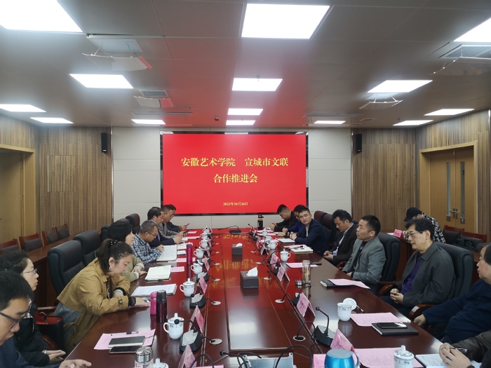 10月26日,宣城市文联主席潘丽华一行来校调研交流。学校党委副书记、院长樊嘉禄出席座谈并讲话。学校党务负责人沈端良主持合作推进会。