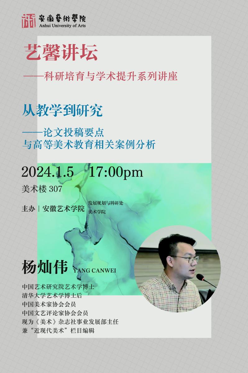 艺馨讲坛预告 | 杨灿伟:从教学到研究,论文投稿要点与高等美术教育相关案例分析