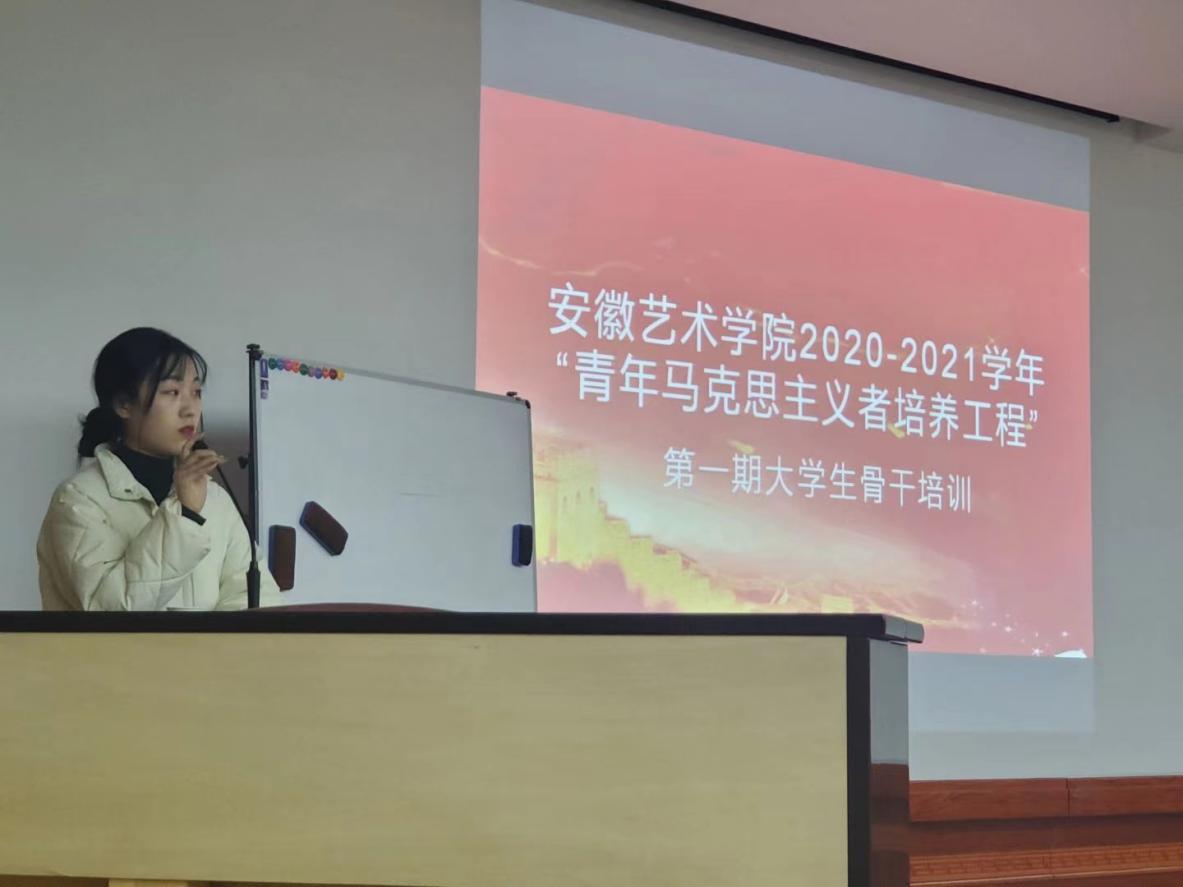 为深入学习宣传贯彻习近平新时代中国特色社会主义思想,提升大学生骨干的思想政治素质、政策理论水平、创新能力、实践能力和组织协调能力。新葡的京集团3512vip校团委于12月22日晚五点在美术楼报告厅举办新葡的京集团3512vip2020-2021学年“青年马克思主义者培养工程”第一期大学生骨干培训班。本次培训由院团委陈明书记主持,校、系两级学生会成员及学生社团负责人参与培训。