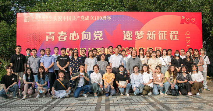 据了解,本次展览共展出中国画、油画、版画、书法、篆刻、剪纸、综合材料绘画作品100件,突出建党百年主题,反映中国共产党走过的百年光辉历程和取得的辉煌成就。本次展览中,美术设计系师生们表现出别样的风采,他们从百年党史中汲取前进力量,用美术语言讲好中国故事,庆祝中国共产党百年华诞。老师们悉心指导学生创作,积极引导学生在作品中厚植爱国主义情怀,创作出富有时代精神内涵的精品,并在探索文化历史融合和创新发展方面进行了大胆的尝试。