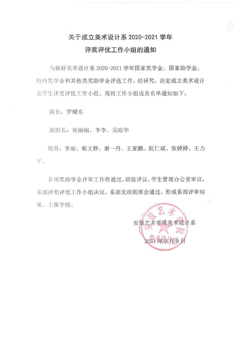 关于成立美术设计系2020-2021学年 评奖评优工作小组的通知
