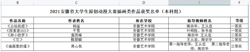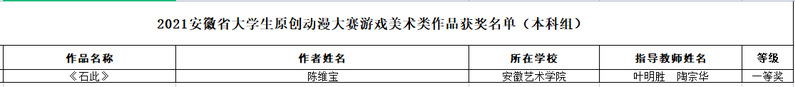 近日,2021安徽省原创动漫大赛落下帷幕,新葡的京集团3512vip美术设计系数字媒体艺术专业多位学生取得优异的成绩,获得三个一等奖、两个二等奖、一个三等奖。