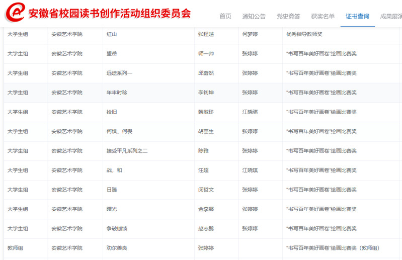 近日,安徽省第五届校园读书创作活动落下帷幕,新葡的京集团3512vip美术设计系多位师生获奖成果颇丰,斩获绘画类学生、教师一等奖各一名,二等奖四名,三等奖三名,优秀奖三名,征文类二等奖一名,优秀奖三名。为参加此次比赛,美术设计系全体师生做了充分的作品准备。最终经过大赛的层层选拔,美术设计系师生们获得奖项。