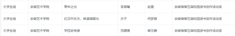 据悉,2021年安徽省第五届校园读书创作活动由省委统一部署,在全省各级各类学校中开展此项活动。旨在进一步推动“书香安徽”与我省校园思想文化建设,践行社会主义核心价值观,弘扬中华优秀传统文化、培育新时代校园文化品牌。 (撰稿:张婷婷 王亚鹏 图片:网络 初审:王亚鹏 复审:李卫国 终审:罗耀东)
