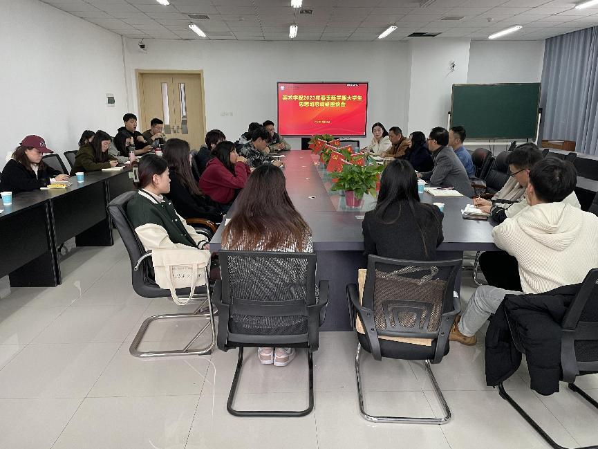 为深入了解学生寒假期间思想动态,倾听学生心声,服务学生成长,3月24日上午,美术学院在307会议室召开2023年春季新学期大学生思想动态调研座谈会。宣传部、学生工作部(学生处)、教务处、保卫处、团委、马院相关领导老师、全体辅导员和学生代表参加会议,会议由党总支副书记李卫国主持。