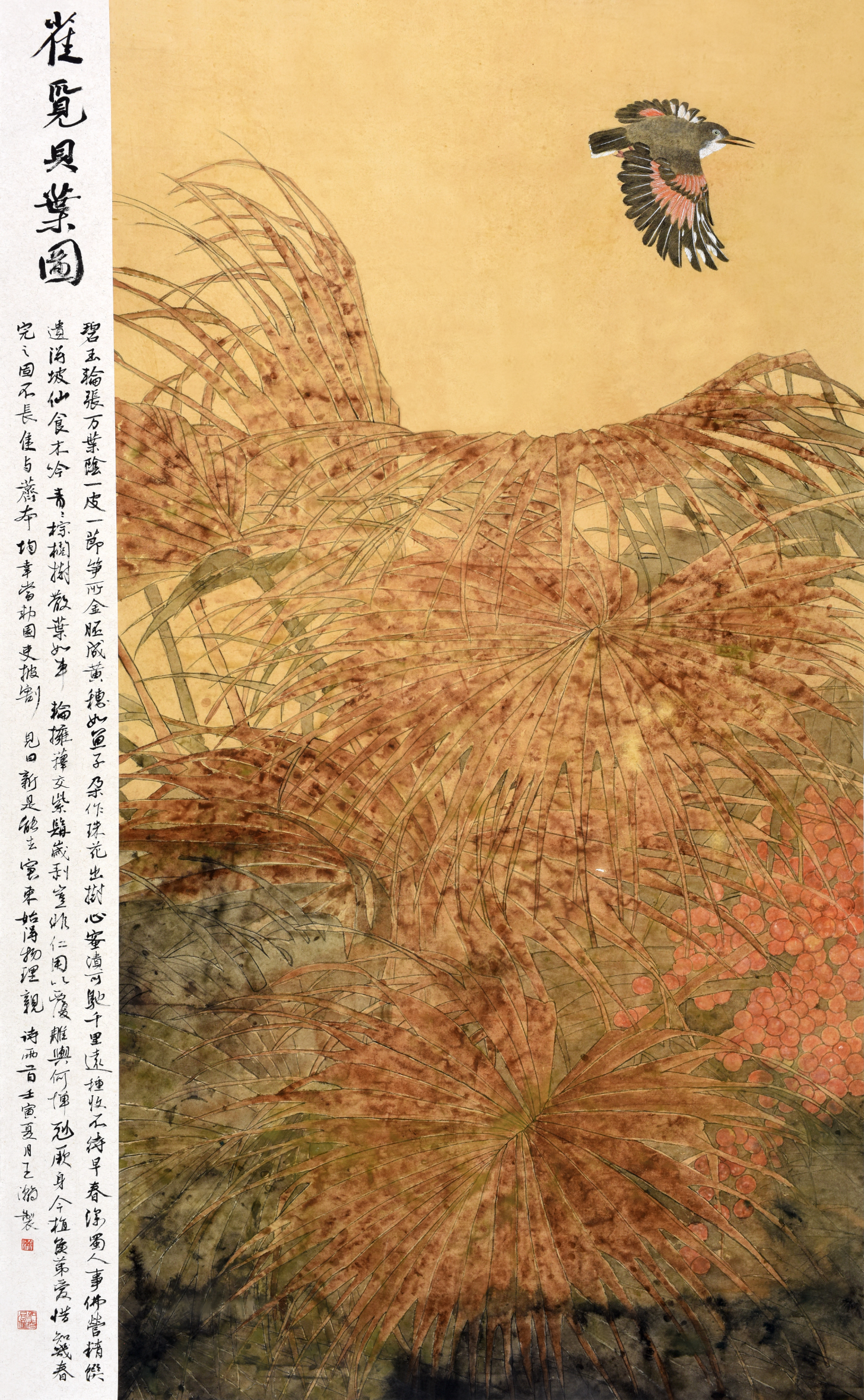 中国画《雀览贝叶图》180X110cm王瀚