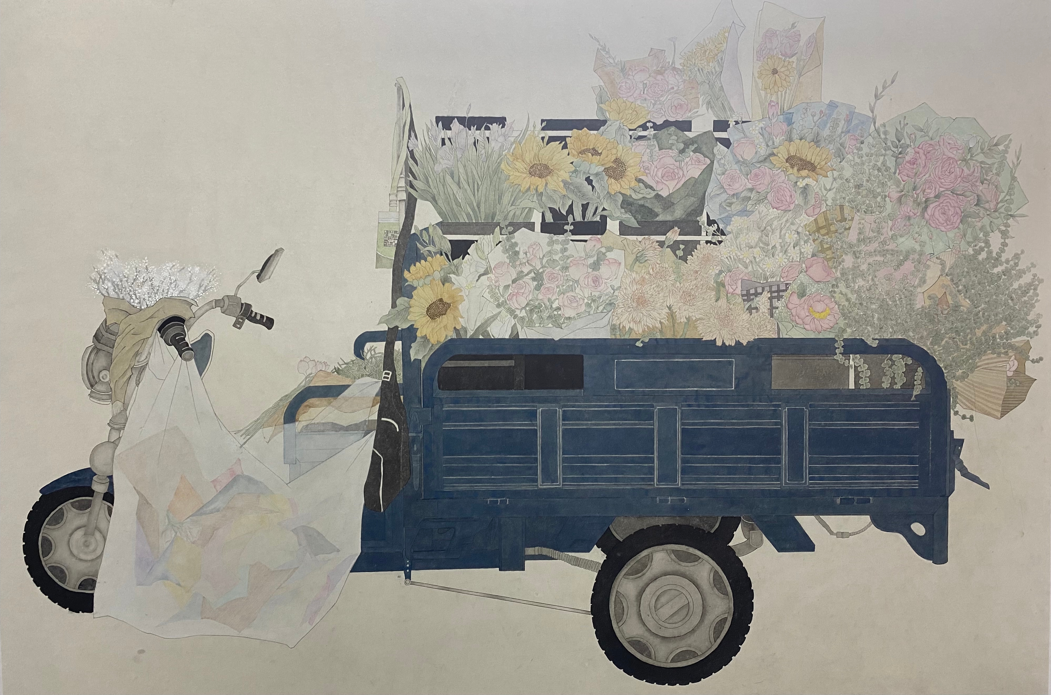 中国画 《小镇花车》120cm×180cm韩世纪
