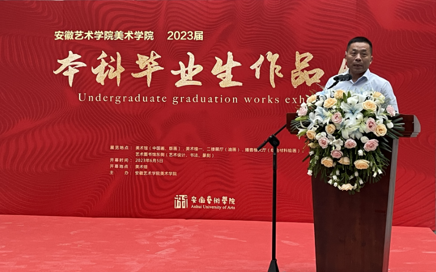 6月5日下午,美术学院在校美术馆举行2023届毕业生作品展开幕式。党委副书记、校长樊嘉禄出席开幕式并致辞。