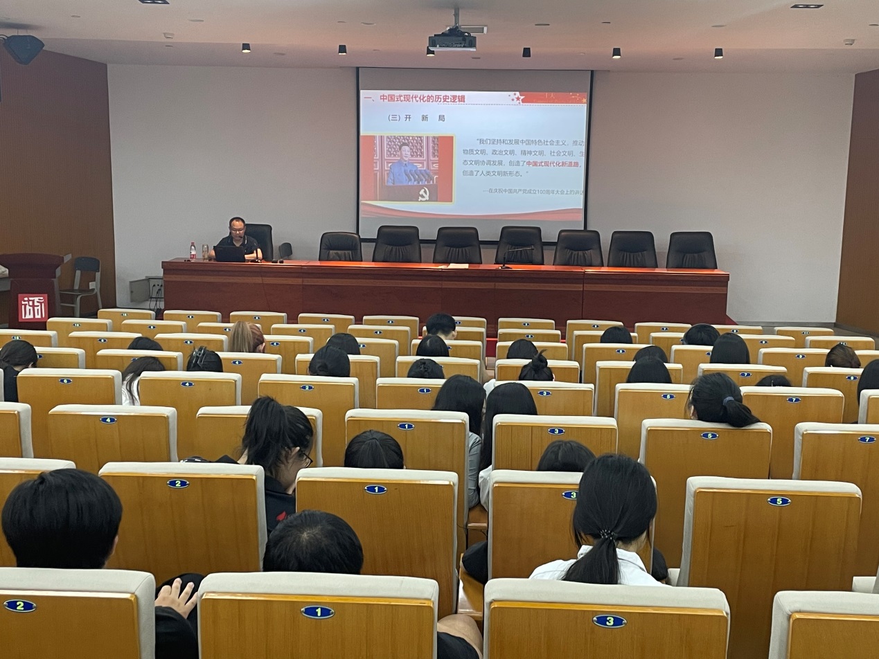 会上,胡克春老师从中国式现代化的历史逻辑、鲜明特色、本质要求、强国战略安排、重大原则和战略任务等方面对党的二十大的主题、过去5年的工作和新时代10年的伟大变革等进行解读,带领大家深入学习党的二十大精神。