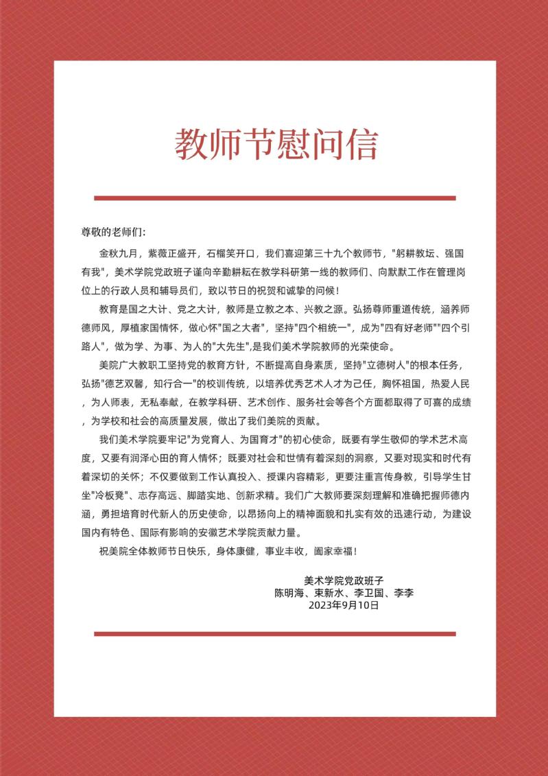 给美术学院全体教师的一封慰问信