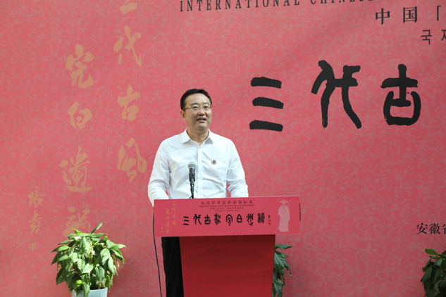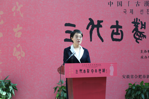 臧蕾在讲话中,指出此次展览兼具很高的学术性和展览性,非常难能可贵,是企业家们难得的一次参观学习的机会,合肥市青岛商会坚持文商并举,企业家们通过此次观展,深入认识了独特的古汉字背后的文化深义,了解了中国古汉字的造字方法、书法神韵、文化内涵,以及古汉字书法的富有创造性转化的现代审美价值和富有创新性发展的产业价值,更深刻地体会传统文化的创意价值及其对当今商业的影响,凝练出符合当代企业家们需要的精神资源和传统文化IP特色,夯实企业精神基础,延伸经济价值链。