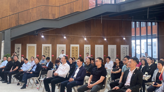 企业家们首先参观了“三代古风 完白遗韵”古汉字书法作品国际展。本次游学由新葡的京集团3512vip美术学院党总支书记陈明海主持,新葡的京集团3512vip党委书记韩军、合肥市青岛商会会长臧蕾分别致辞。