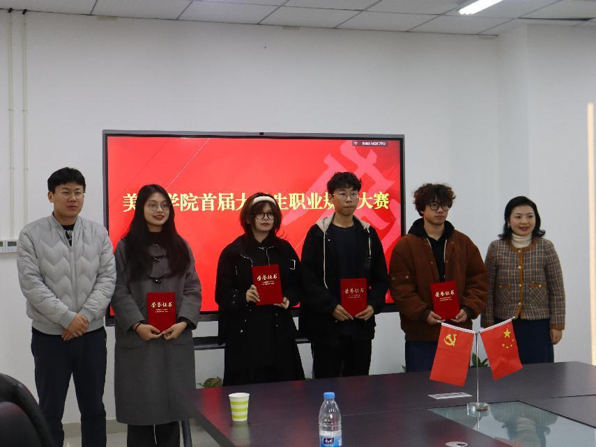 为贯彻落实党的二十大精神,增强大学生职业规划意识,11月14日下午,美术学院在美术楼307会议室举办大学生职业生涯规划大赛。美术学院党总支副书记李卫国、传媒学院学管办负责人陈伟伟、设计学院学管负责人王亚鹏、美术学院团总支负责人阮仁斌和学管办负责人刘民老师出席此次比赛并担任评委。各班级共13名选手参加参赛,部分学生到场观摩比赛。
