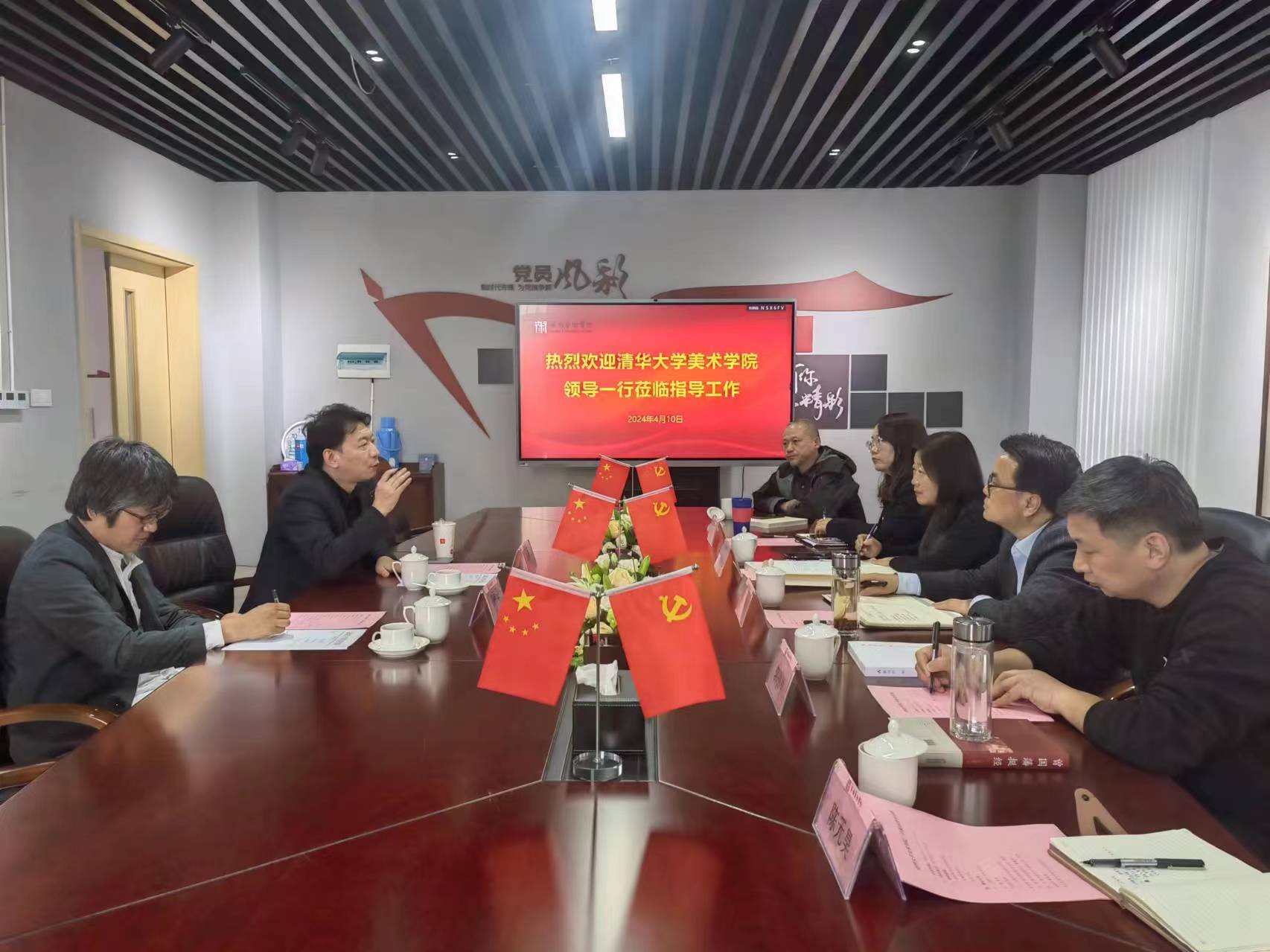 4 月 10 日下午,清华大学美术学院润福教授岳嵩教授到访美术学院,就第七届“薪技艺”国际工艺美术作品展的合作事宜进行了深入的洽谈。美术学院党总支书记陈明海、院长束新水、副院长李李参加会议。