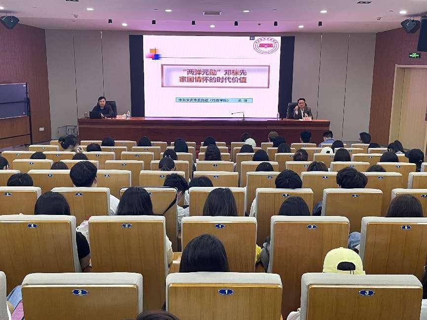 吴洁老师以“两弹元勋”邓稼先家国情怀的时代价值为主题,分别从邓稼先的成长历程、卓越贡献、家国情怀、时代价值等方面,通过生动故事诠释了“心有大我、至诚报国”的爱国精神,“淡泊名利、甘于清贫”的奉献精神,“不计得失、身先士卒”的担当精神,不畏艰苦、 百折不挠的奋斗精神,“真诚纯正、宽厚包容”的高尚品德。