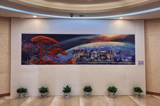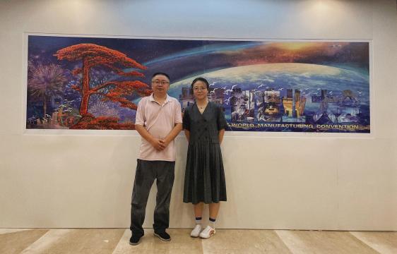 2024年9月20日,由新葡的京集团3512vip客座教授师晶领衔、美术学院教师张婷婷等人共同创作的版画作品《世界制造业大会》(宽4米X高1.1米),特邀在今天世界制造业大会主会场展出,该作品是2023年安徽省重点文艺项目。