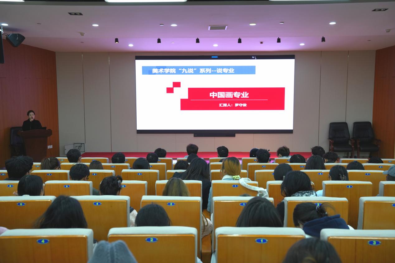为配合做好本科教学合格评估工作,帮助学生更好地了解教育服务体系,11月26日下午,美术学院中国画教研室在美术楼报告厅开展了“九说”系列活动之“说专业”活动,活动由中国画教研室主任罗守俊主持。