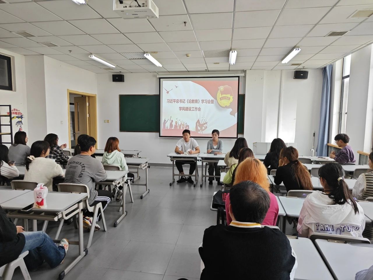 为进一步贯彻落实党的教育方针,推动教育强国建设,涵养大学生“有理想、敢担当、能吃苦、肯奋斗”的精神,培养德智体美劳全面发展的社会主义建设者和接班人。10月18日,设计学院团总支组织开展习近平同志《论教育》主题团日活动暨学风建设座谈会,学院各班级团支书、思政委员积极响应。学院团总支副书记王亚鹏,专职辅导员薛莲参加。
