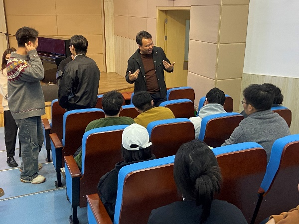 2024年10月22日下午设计学院在音乐南楼一楼报告厅组织开展2025届毕业实习动员大会暨实习单位宣讲交流工作会议。此次宣讲会由学院副院长撒后余主持,21级数字媒体艺术专业、21级环境设计专业毕业生、教学科研办公室、实习指导教师等参加会议。