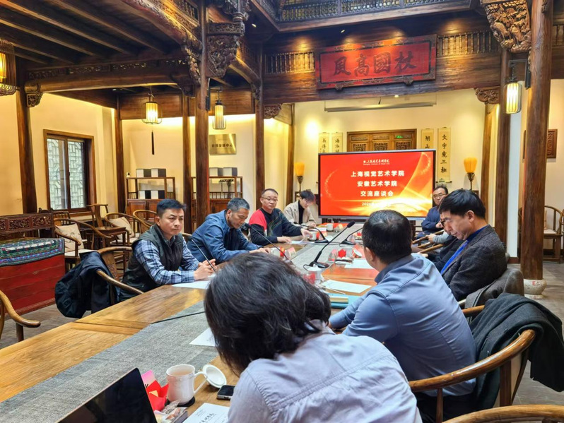 调研活动的高潮部分是在双馨苑举行的交流座谈会,在上海视觉艺术学院校长助理易宇的主持下,双方领导及教师们共聚一堂。会上,双方围绕艺术与科技专业建设、设计学科与行业交融等核心议题进行了深入交流,就共同关心的教育挑战、发展趋势及解决方案展开了热烈讨论。易宇校长助理特别强调了上海视觉艺术学院在艺术教育方面的创新实践,以及对科技融合的重视。通过分享各自的成功经验与面临的挑战,双方进一步明确了合作的方向与潜力,为共同推动艺术设计类专业教育的高质量发展奠定了坚实基础。
